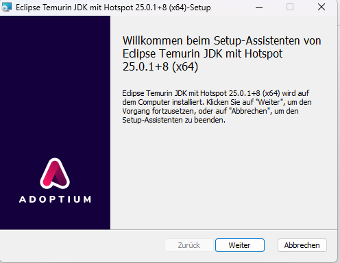 3. Installer starten (Eclipse Temurin JDK Setup)