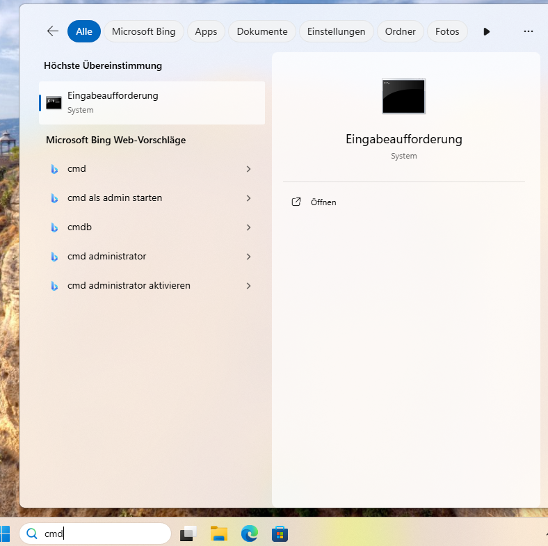 Öffne das Startmenü, tippe cmd und starte die Eingabeaufforderung. Das ist die schnellste Methode, um zu prüfen, ob PATH/JAVA_HOME korrekt gesetzt wurden.