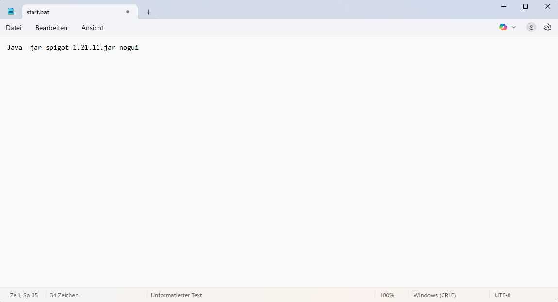 start.bat(wichtig: Dateityp „Alle Dateien“ auswählen, damit es wirklich.batwird und nichtstart.bat.txt).