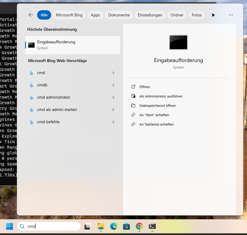 Öffne die Eingabeaufforderung (cmd) und gib ein: