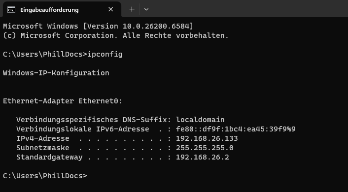 Suche die Netzwerkverbindung, die du benutzt (z. B. Ethernet oder WLAN), und notiere die IPv4-Adresse (z. B. 192.168.x.x). Diese Adresse brauchst du zum Verbinden im LAN.